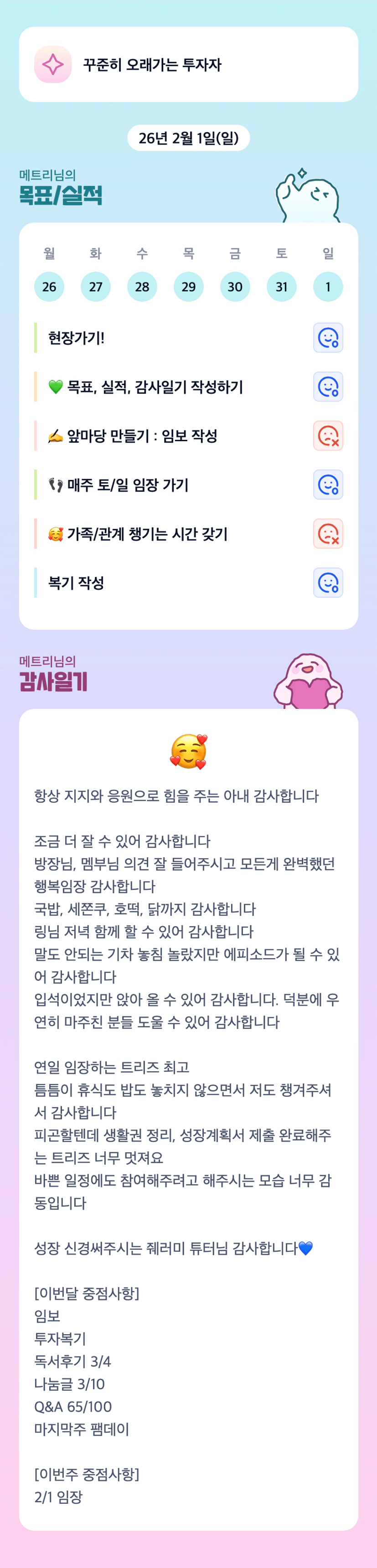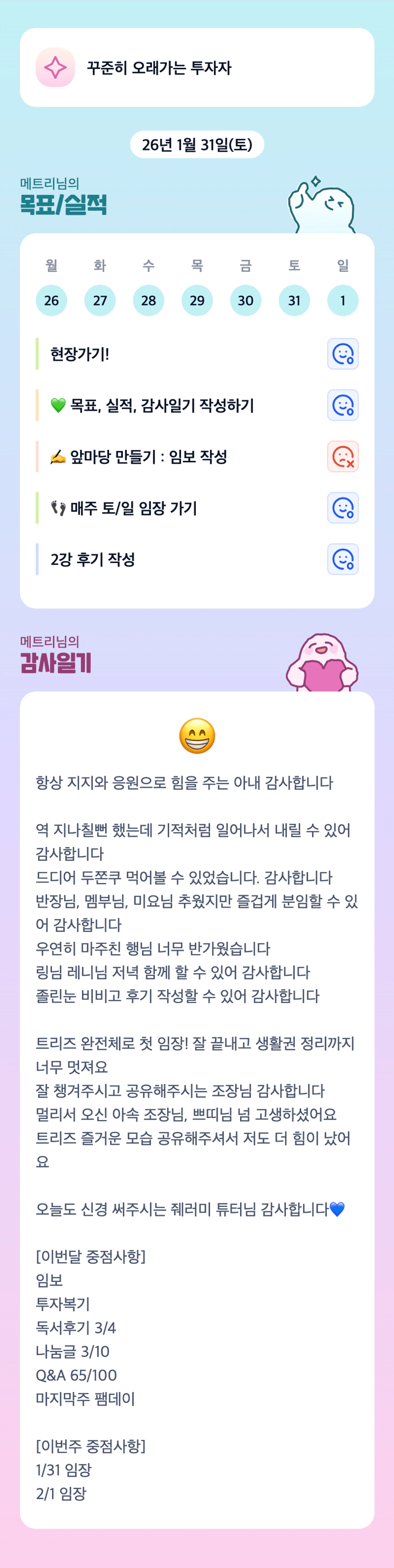 튜터님 주말 임장하시느랴 트리즈 챙기시느랴 고생 많으셨습니다:)
