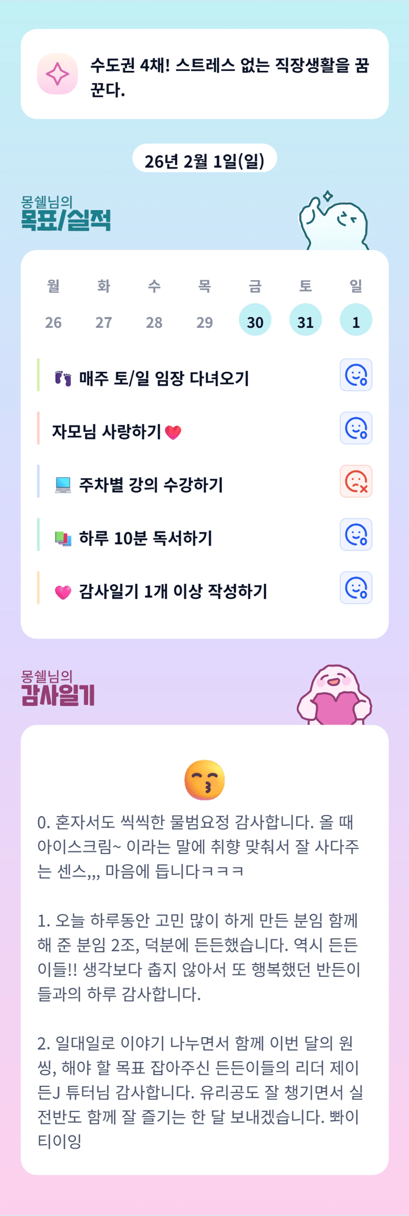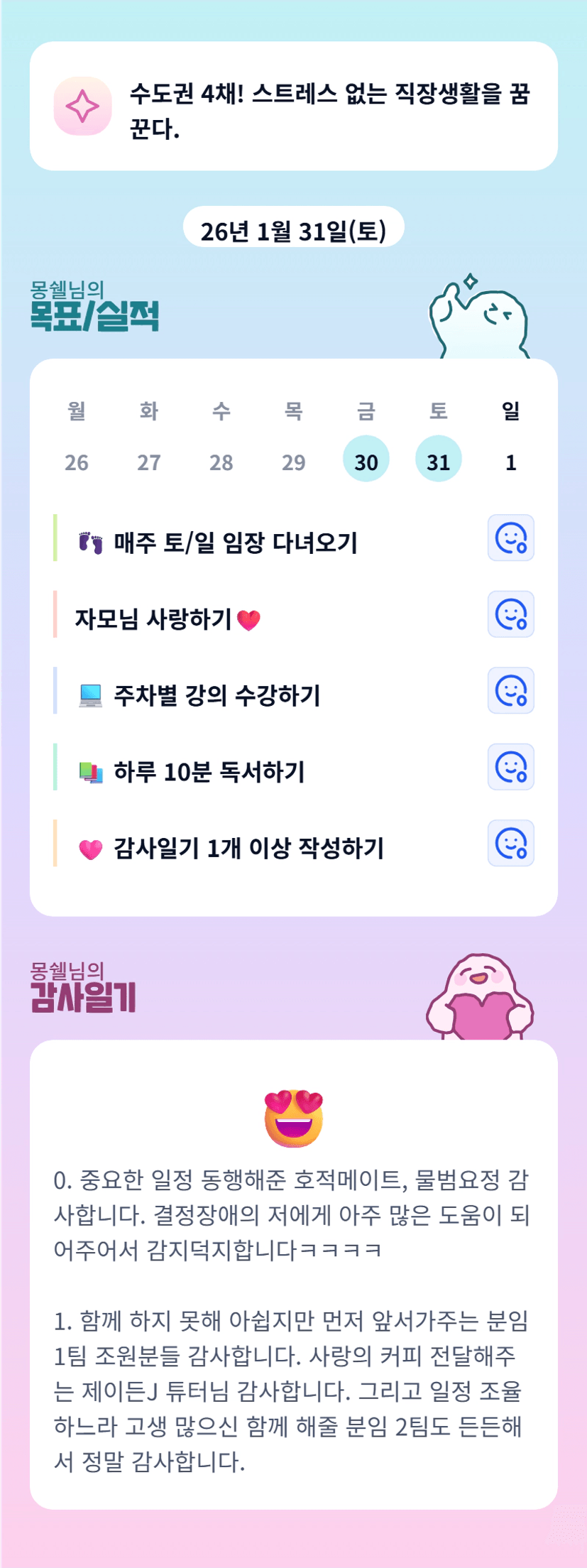 몽쉘님 몸은 괜찮으신가요!!이번주 단임도 잘 부탁드립니닿ㅎㅎ