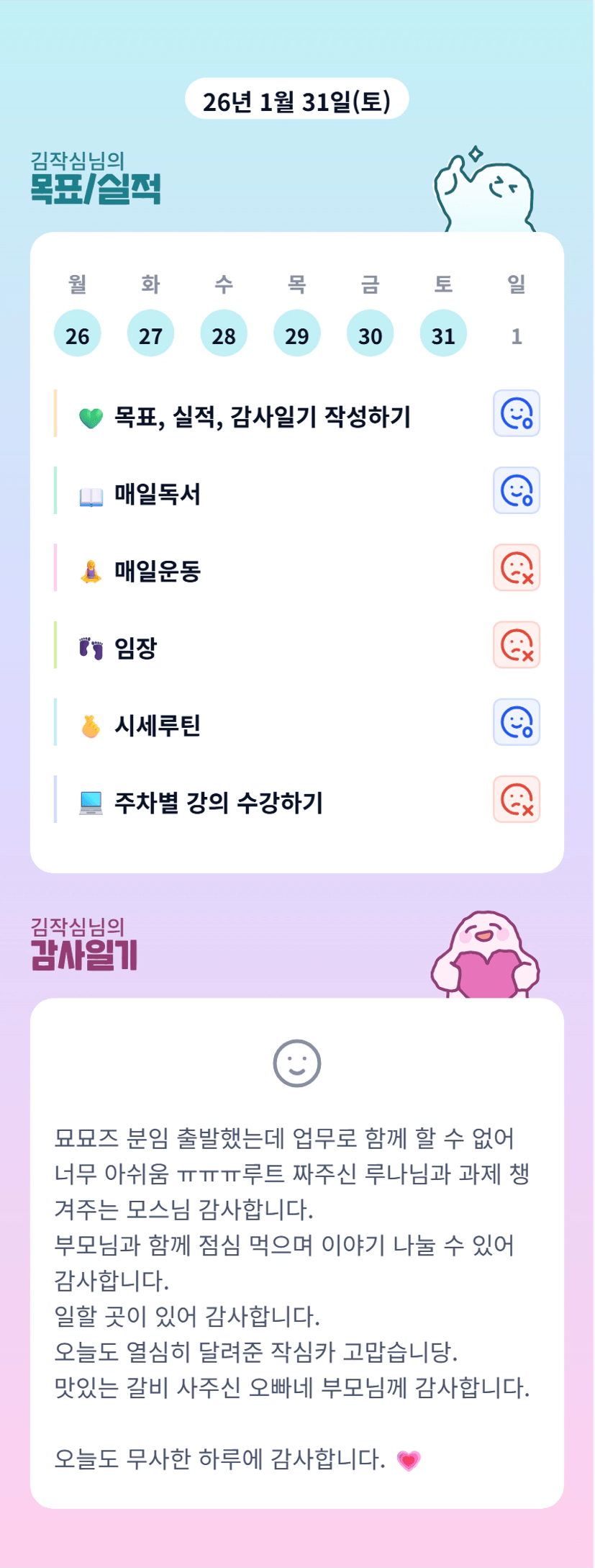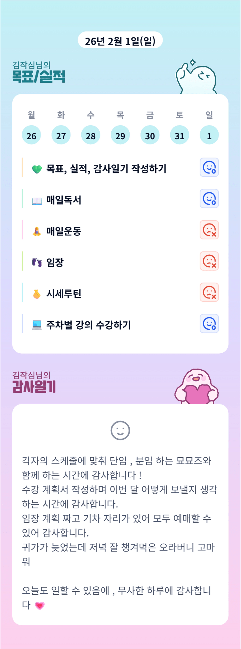 조장님 주말에도 일 하시느라 고생많으셨어요ㅠㅠ 이번주에 볼 수 있다아!!! 항상 챙겨주셔서 감사해용!!