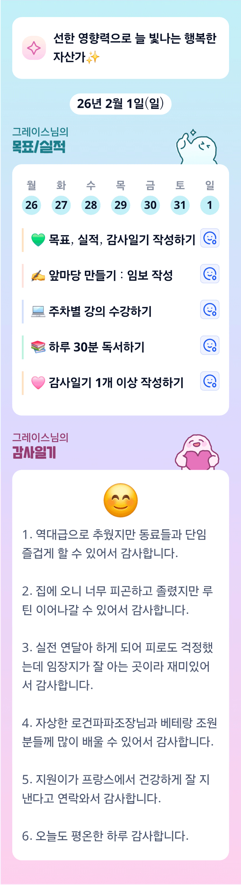 피곤도 이기는 이스님의 열정이 멋져요!! 하루하루 감사함 가득한 날들 되시길♡