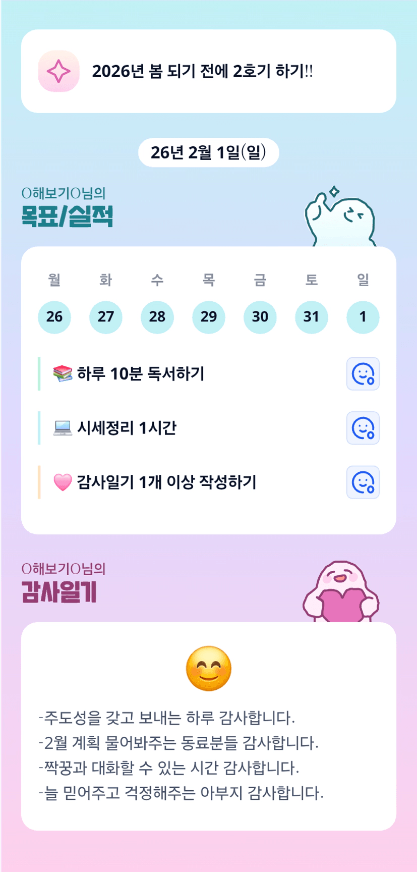 조장님~~ 2월엔 뭐 들으시나요~? 궁금합니당ㅎㅎ