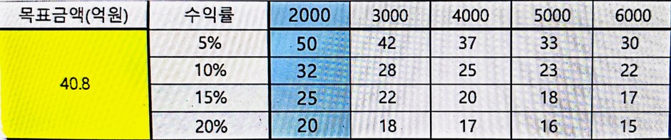 목표금액 50억 (현재 나이 49세, 연 저축액 2000만원)