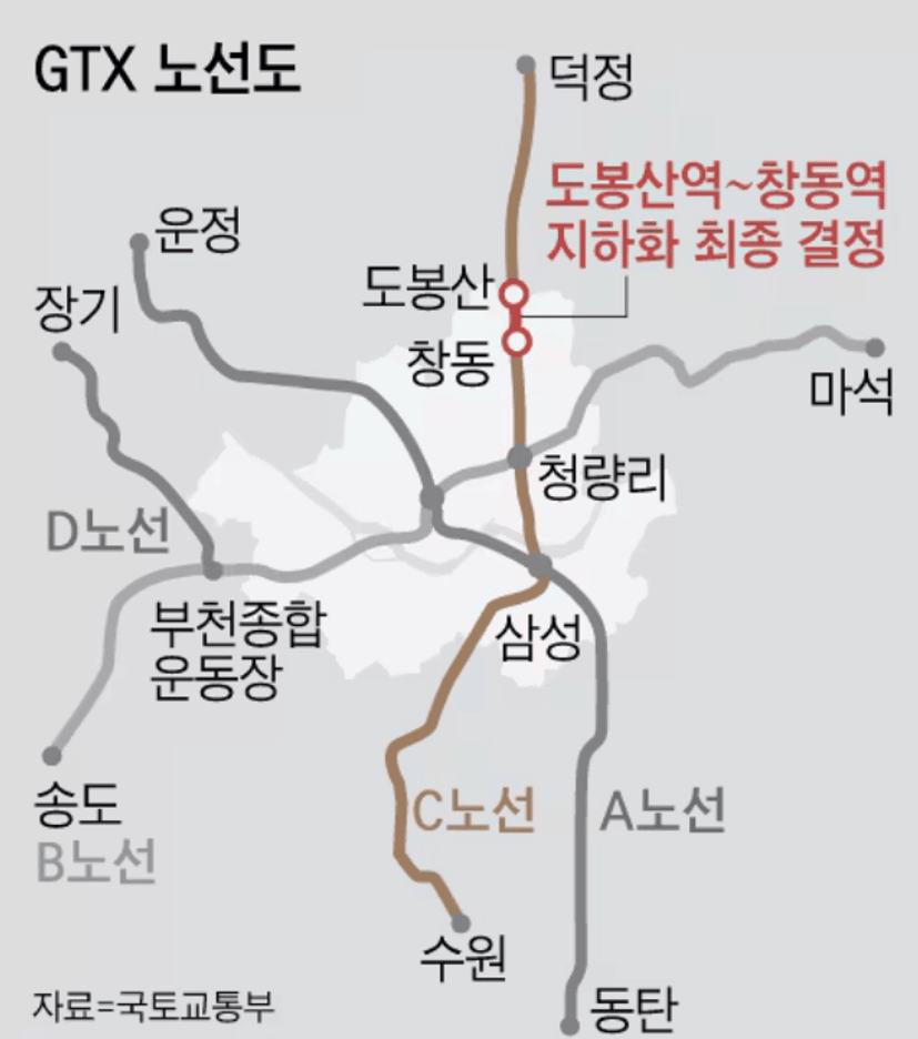 • GTX-C 노선 (창동역 간접 수혜): "강북에서 삼성역까지 20분 컷"