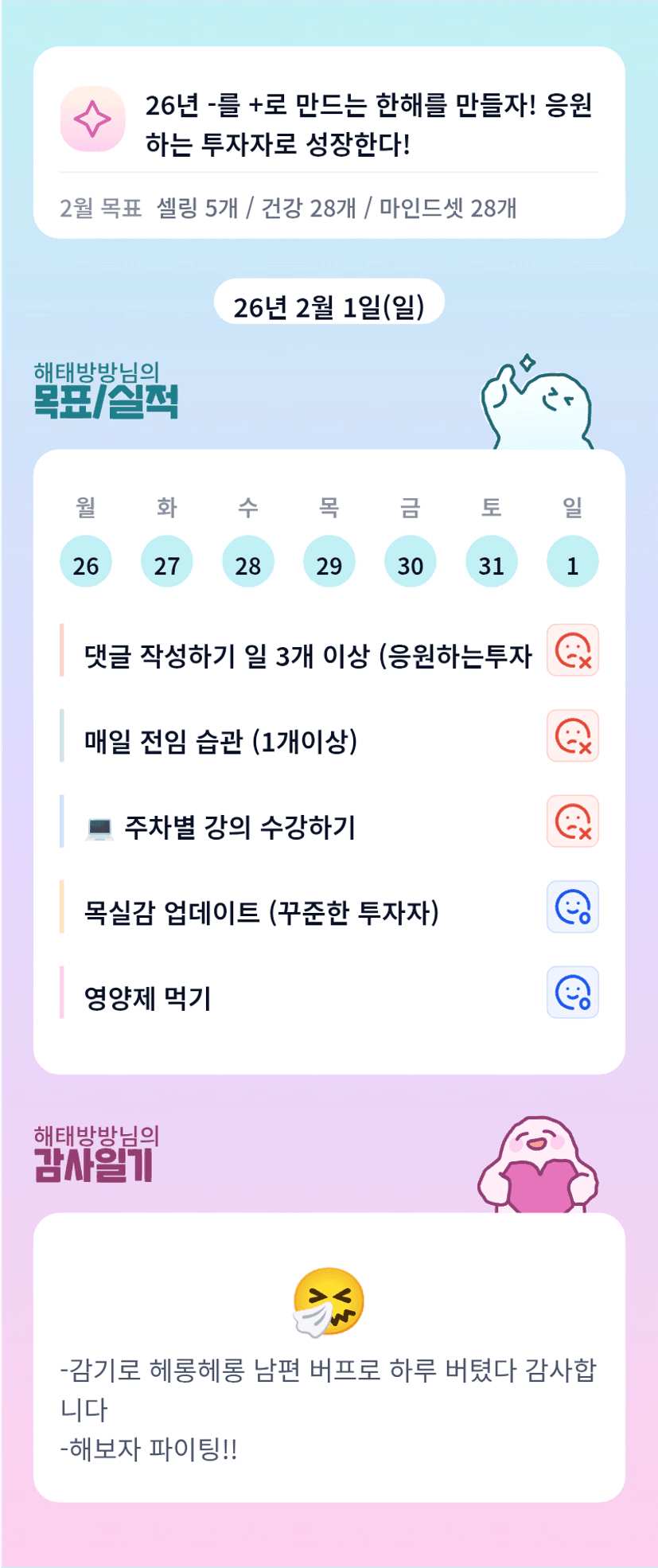 해태방방님 한달간 고생하셨어요!2월도 화이팅입니다 🙌