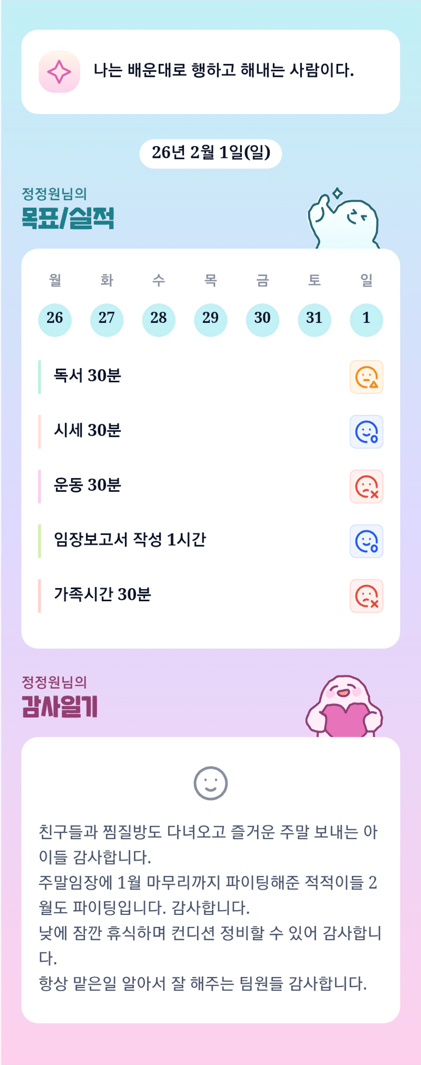 토요일 임장 후 일요일 업무까지 넘넘 고생 많으셨어요!! 항상 꾸준한 정원님 최고에요!