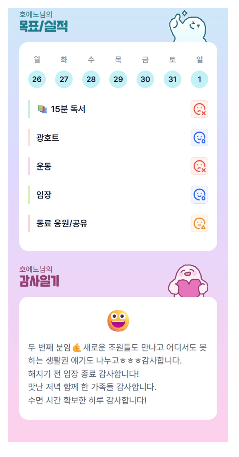 우리에노님의 유쾌한 성격에 같이 대화 나눠서 넘 즐거웠어요!!ㅎㅎㅎㅎㅎㅎ 마지막 e편한에서 하이라이트까지ㅋㅋㅋㅋㅋㅋㅋ 이번주도 뽜이팅!