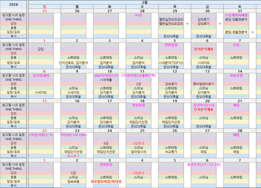 [실전34기 2제 우리 0앤리치들이 왔드아 투자하고시포도링🍇 해적왕] 주간 복기(+월간 복기 & 2월 원씽캘린더)