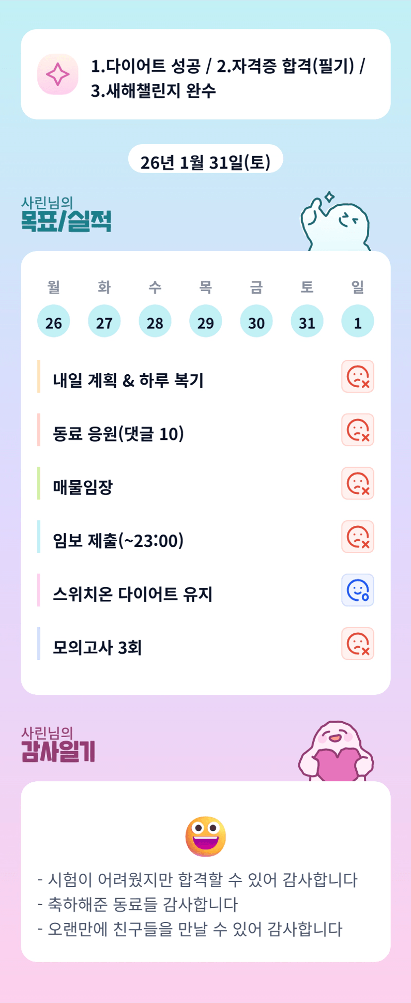 오!! 자격증 시험보셨어요?!!! 너무 축하드려요 사린님!!!! 고생 많으셨습니다!