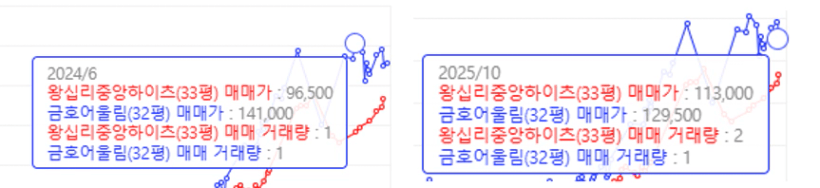 특히 왕십리중앙하이츠는 흐름이 늦어 이제야 전고점 회복중이지만