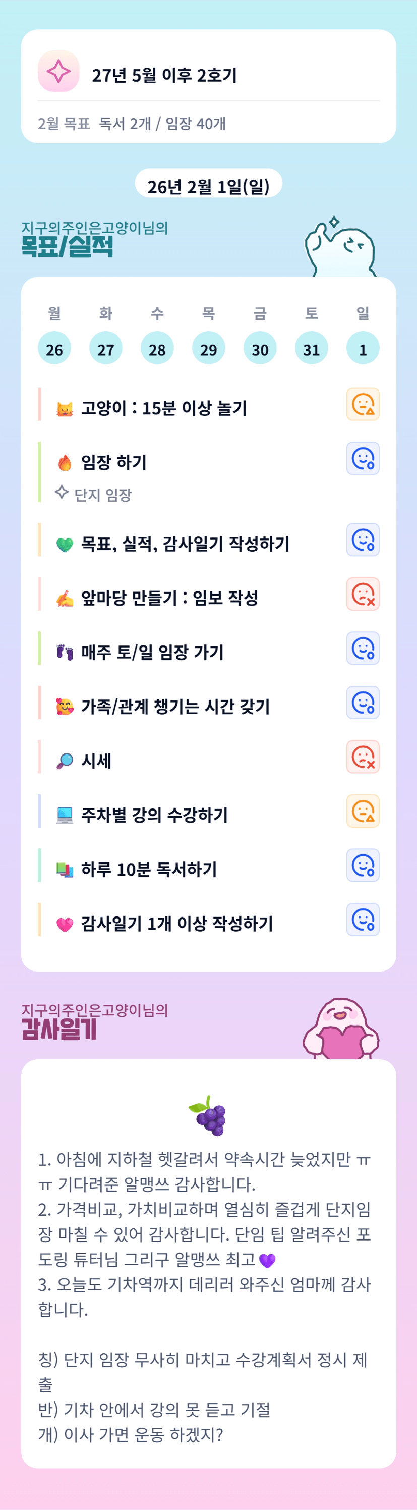 [실전33기 S2쉿! 밍튜님과 오늘부터 1일이조 지구의주인은고양이] 최종임장보고서