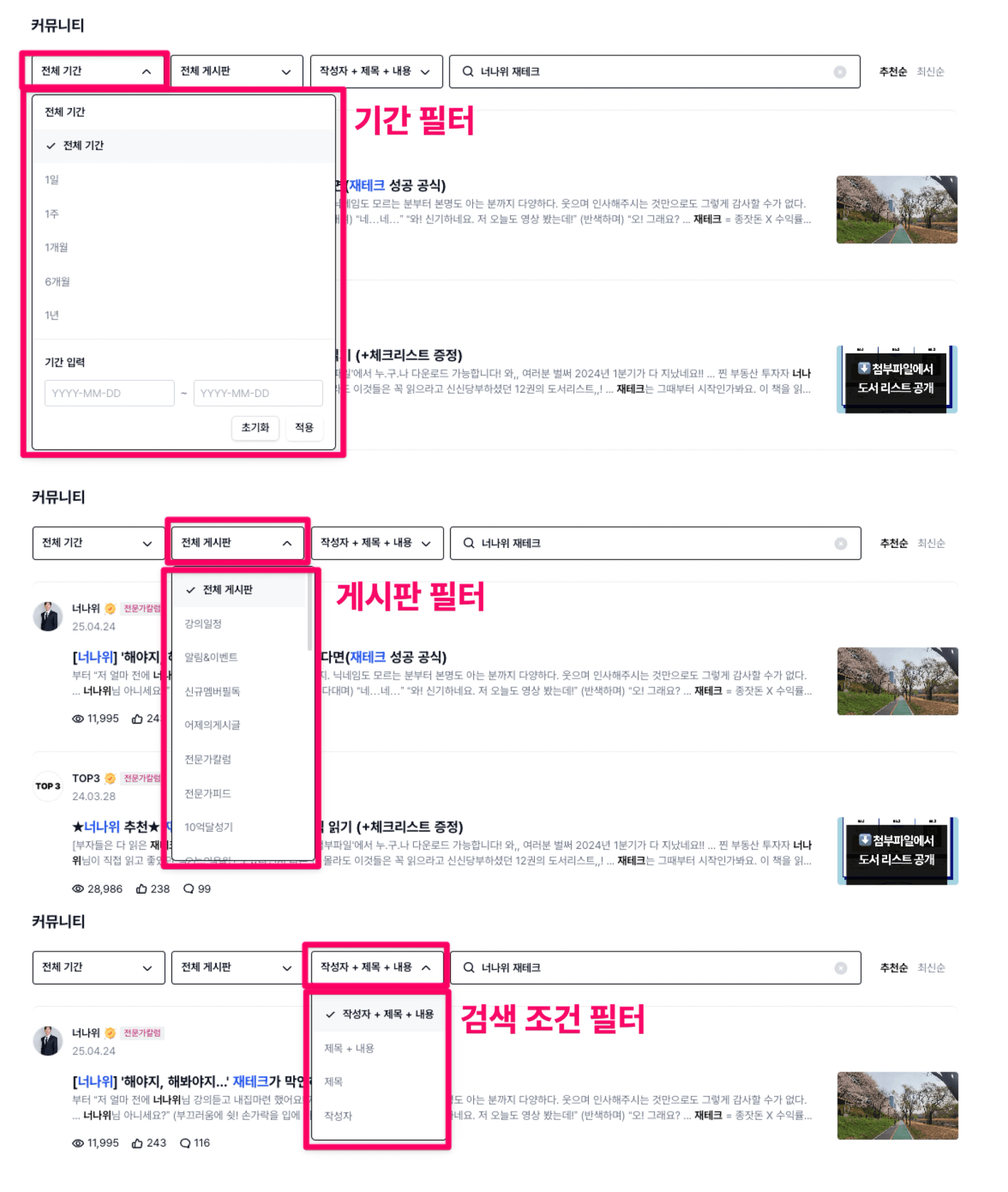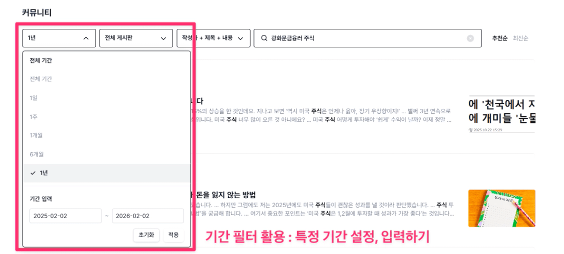 1. 특정 기간의 글을 보고 싶다면 → 기간 필터를 사용하세요.