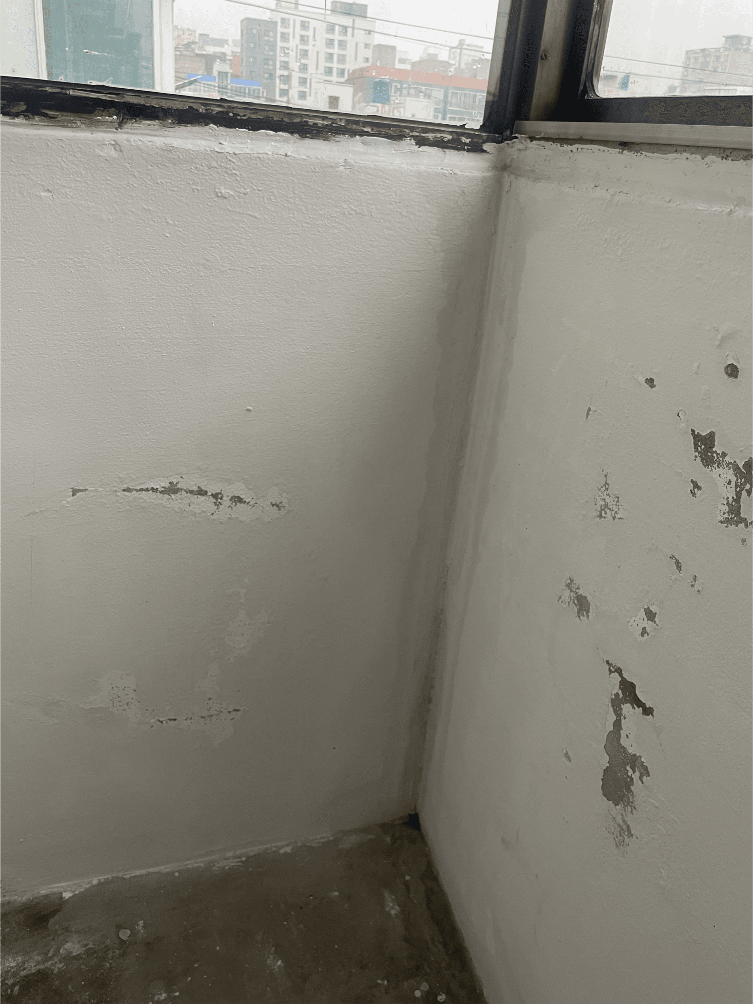 코킹이 오래되어 흘러내렸던 뒷베란다