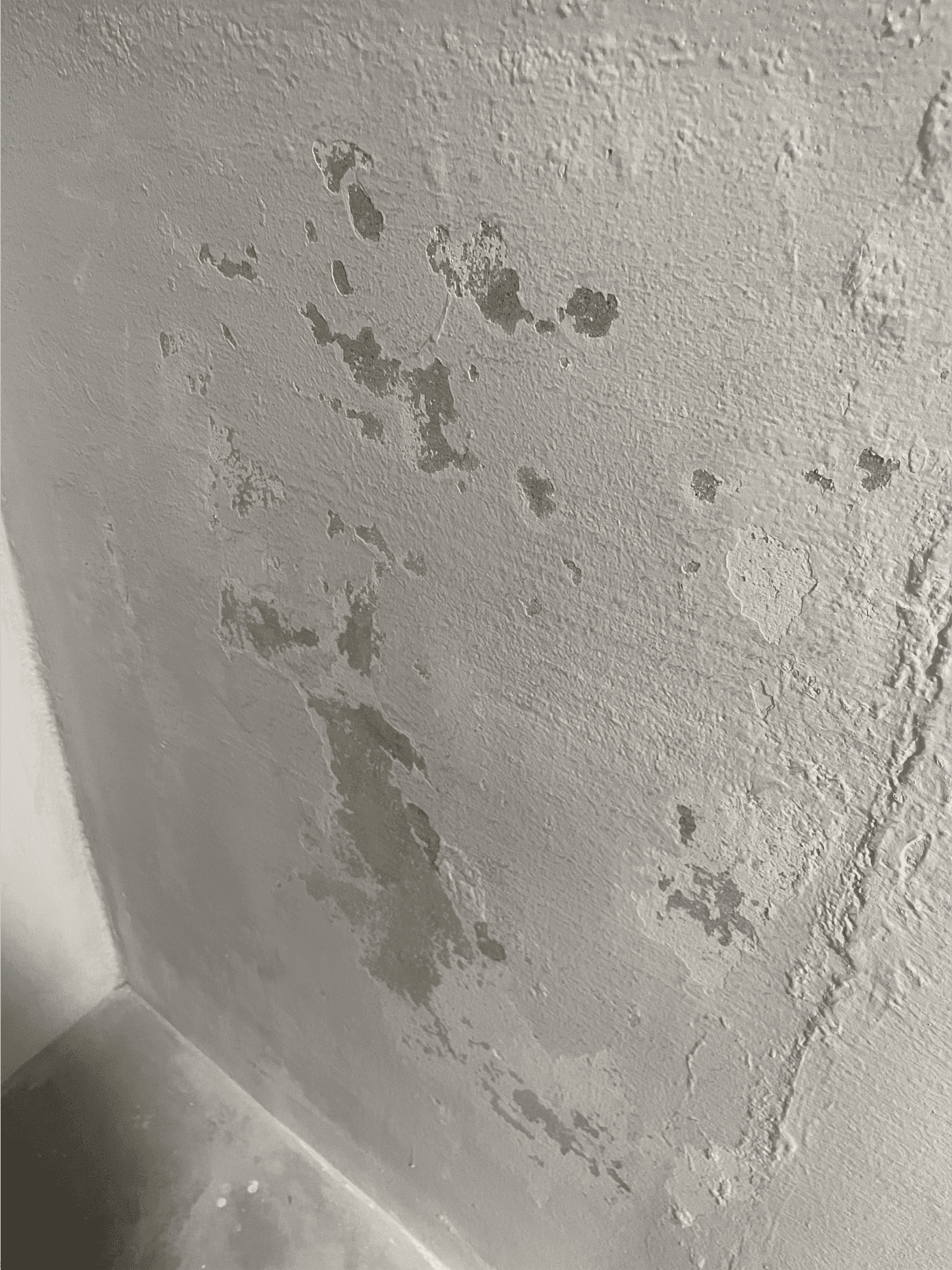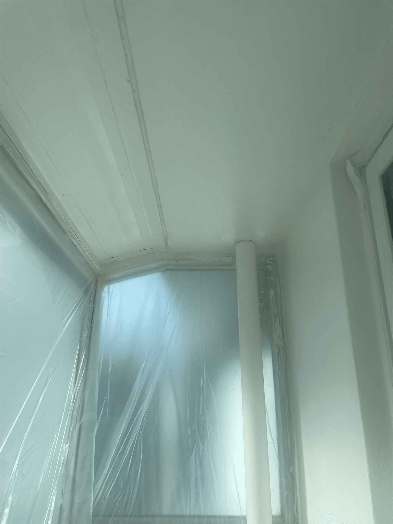 누수로 인해 베란다 천장과 벽이 많이 벗겨졌기에 페인트 작업은 불가피했는데