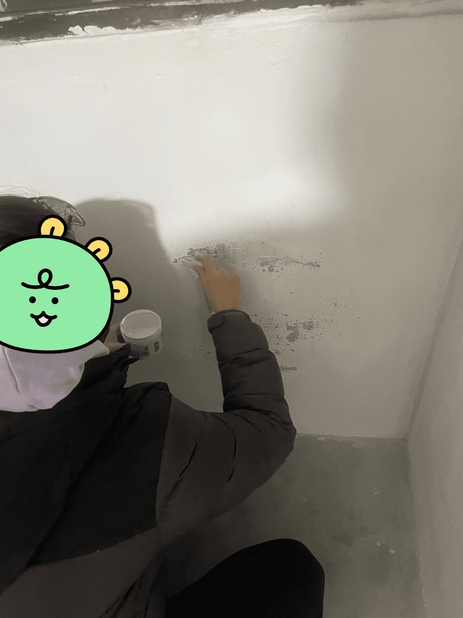 페인트 아래 있던 시멘트가 보이네요 (까꿍)