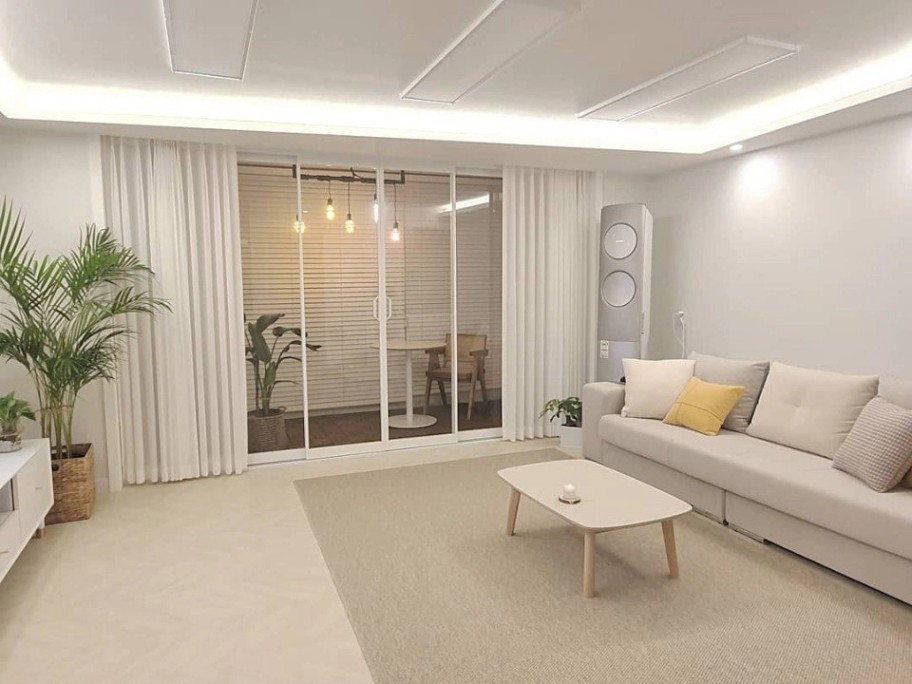 엔틱한 우드톤으로 꾸민 나의 서재에서는 작업 능률이 높아서 내가 가장 좋아하는 공간이다. 독서도 글쓰기도 술술 잘되는 것만 같다. 은은한 조명과 자동 버티컬, 시몬스 침대가 설치된 안방은 낮 동안 받은 스트레스를 완화하고, 몸과 마음을 힐링하고 재충전하는 공간이다. 작은방1은 필라테스와 근력 운동을 할 수 있는 운동방으로 꾸며두었고, 작은방2는 안방에 미처 정리못한 옷들과 소지품을 정리하는 옷방으로 꾸며두었다. 시스템 행거와 소품을 정리할 수 있는 수납 공간, 그 위에 놓인 꽃병은 보는 것만으로 행복 그 자체이다.