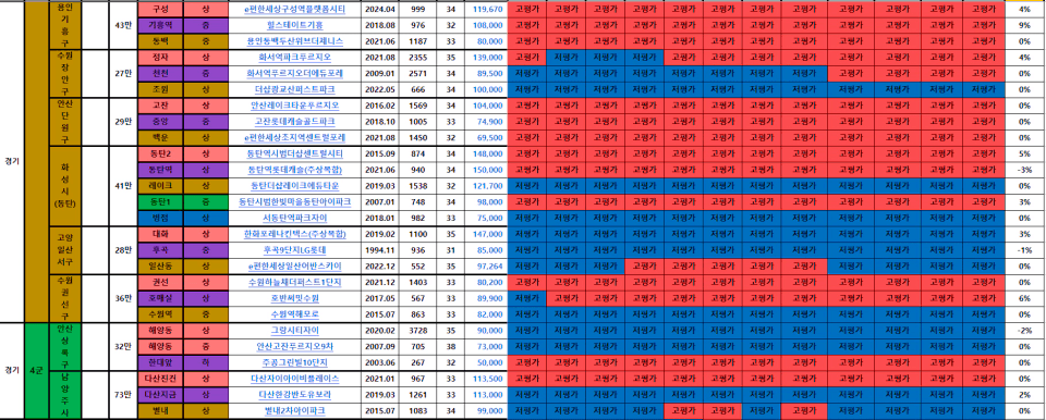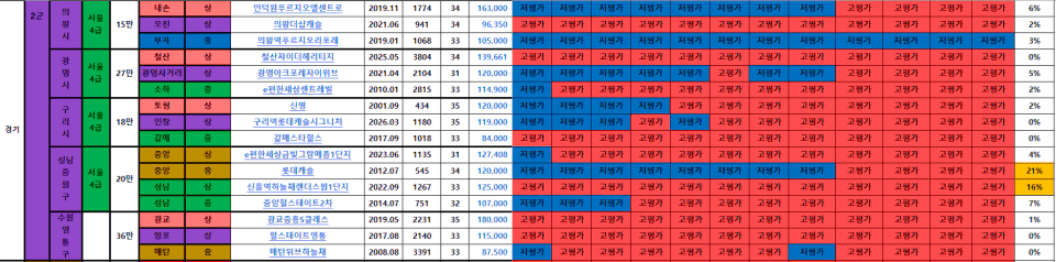 재건축을 제외한 가급적 신축위주로 기재 하였습니다.