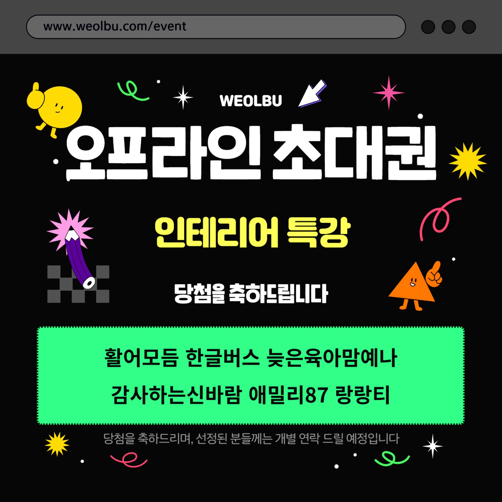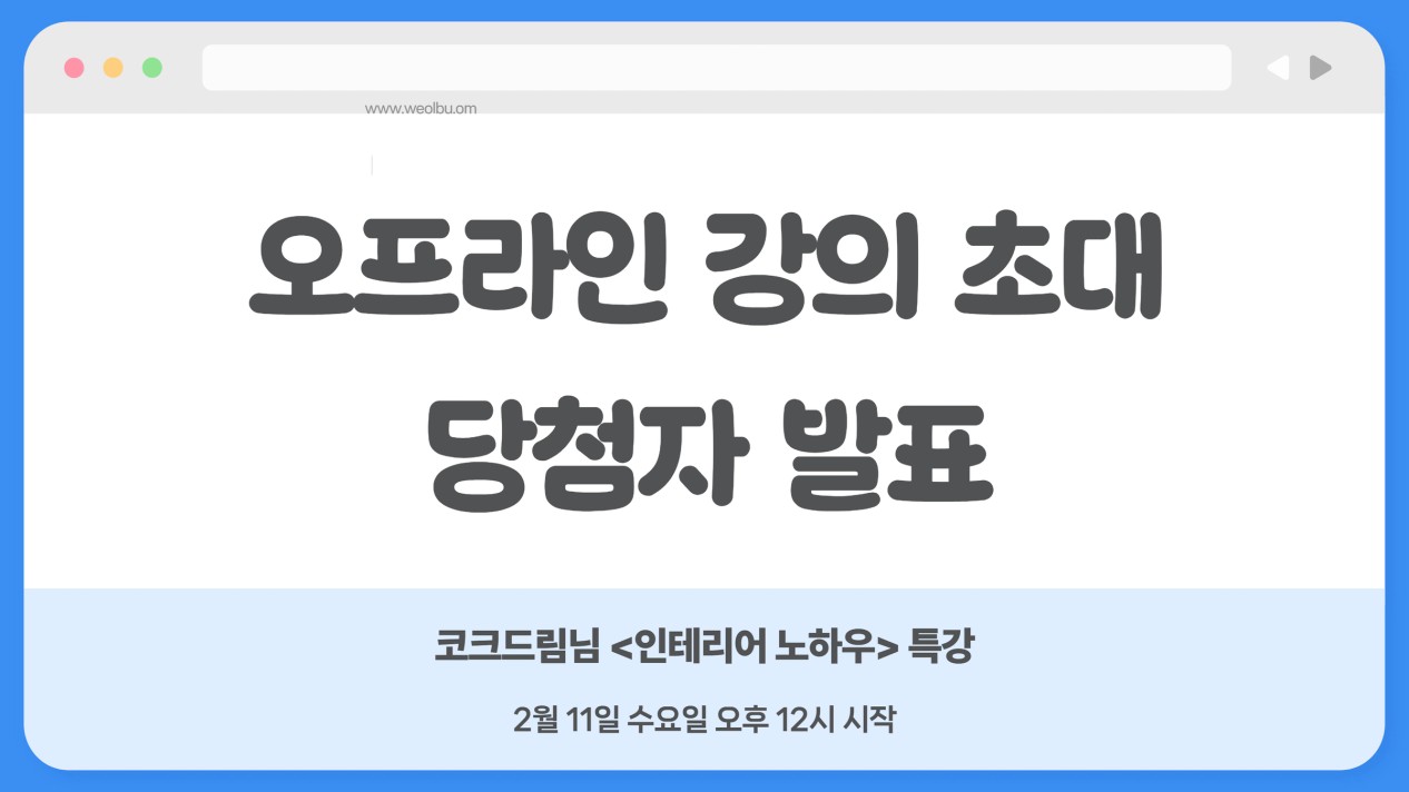 당첨되신 분들께는 개별 연락을 통해 자세한 강의 장소 및 참여 가이드를 안내해 드릴 예정입니다.
