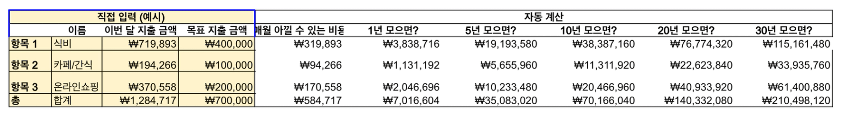 A. 매월 아낄 수 있는 비용 = 이번 달 지출 금액 - 목표 지출 금액