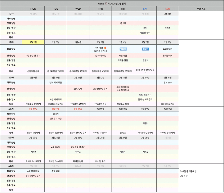 목표: 총 130페이지 이상 / 매일 5장 이상