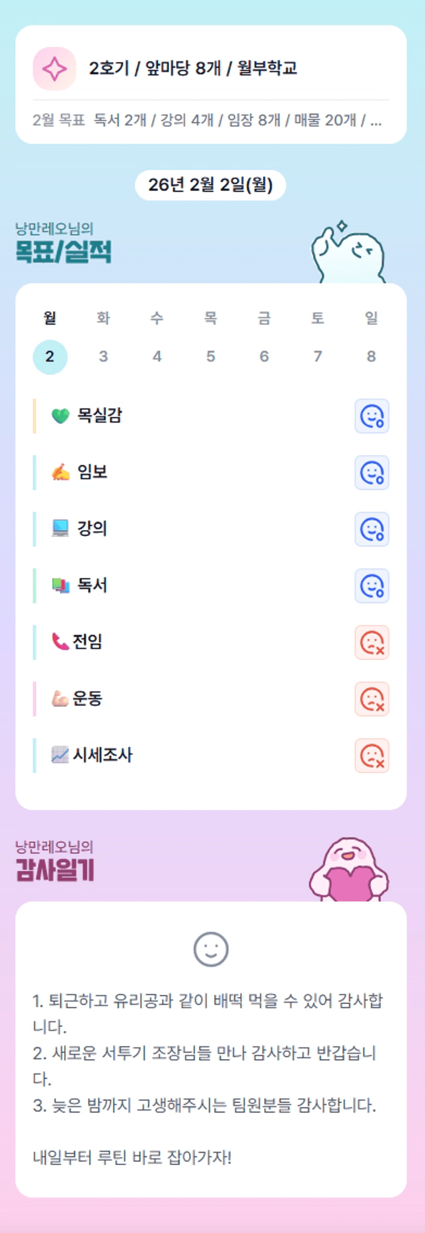 저도 첫날부터 임보밀림사태가..ㅋㅋㅋㅋ 레오조장님. 내일부턴 밀리지 말기~