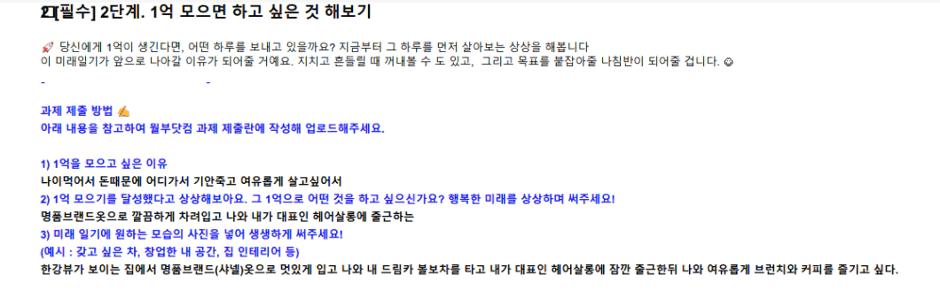 목표 - 앞으로 강의를 들으면서 더 아껴야한다는 생각과 재테크가 무엇인지 완벽하게 알고 남자친구가 하는 투자에 조금이나마 내가 도움이 될수있도록 하겠습니다.