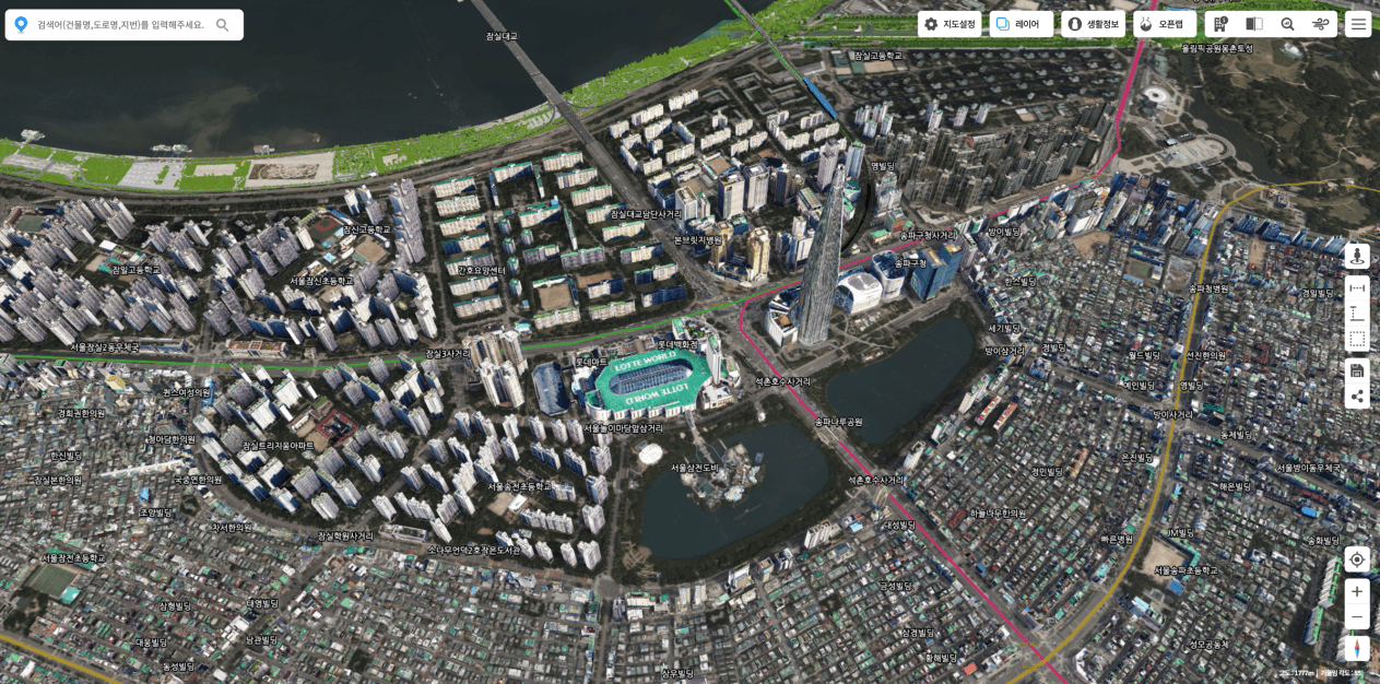 롯데월드, 석촌호수가 보이고