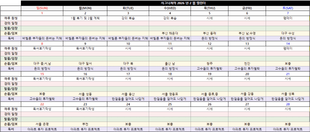 2월은 가족 챙기느라 강의 수강에서 잠시 소홀해지는만큼, 시세나 독서 등 투자에 필요한 것들을 채워나가면서 가족을 챙길 수 있도록 해야겠습니다.
