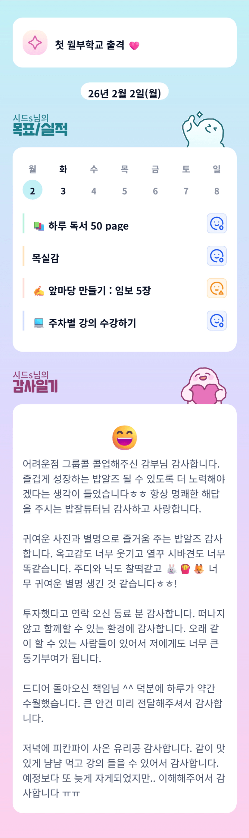 반장님 우리반 별명부자 생기고 추억 쌓일 수 있도록 만들어 주셔서 감사해용🖤