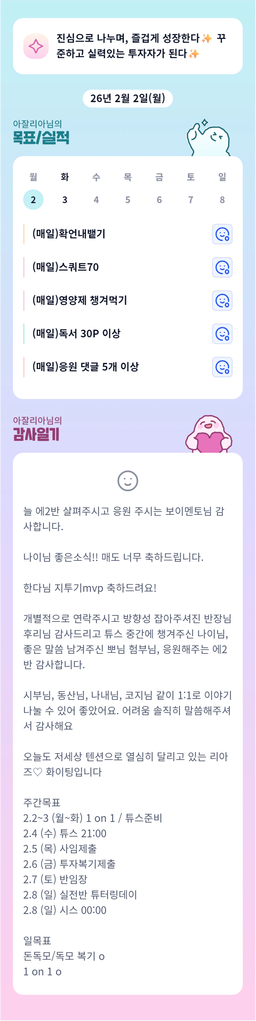 우왕 튜터님 목실감에 등쟝✨️ 감사합니다 ❤️