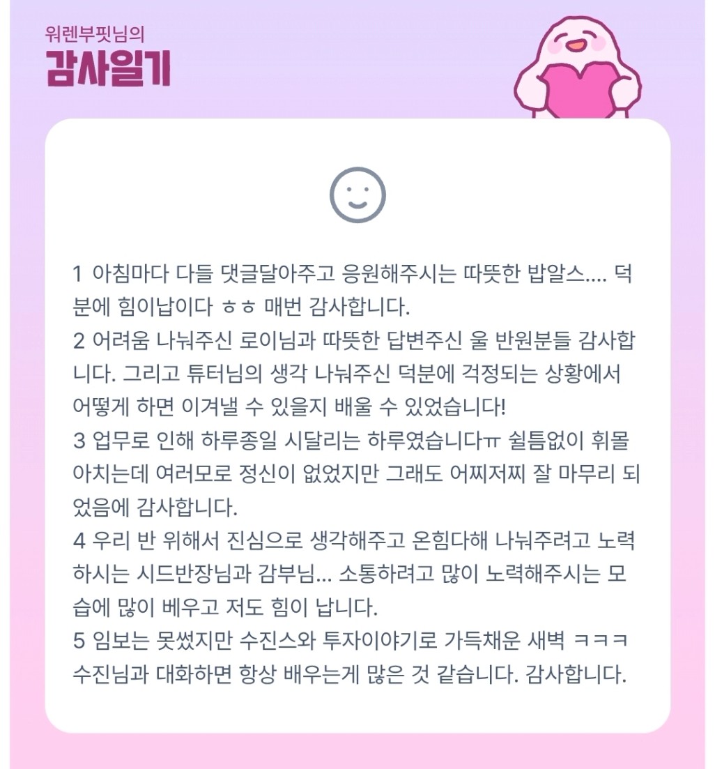 수진쓰와의 투자 이야기!!! 엿듣고 싶따😆 오늘은 어제보다 더 수월한 하루 되기를!!! 핏뿌님 오늘도 화이팅입니당!!!!😌🔥