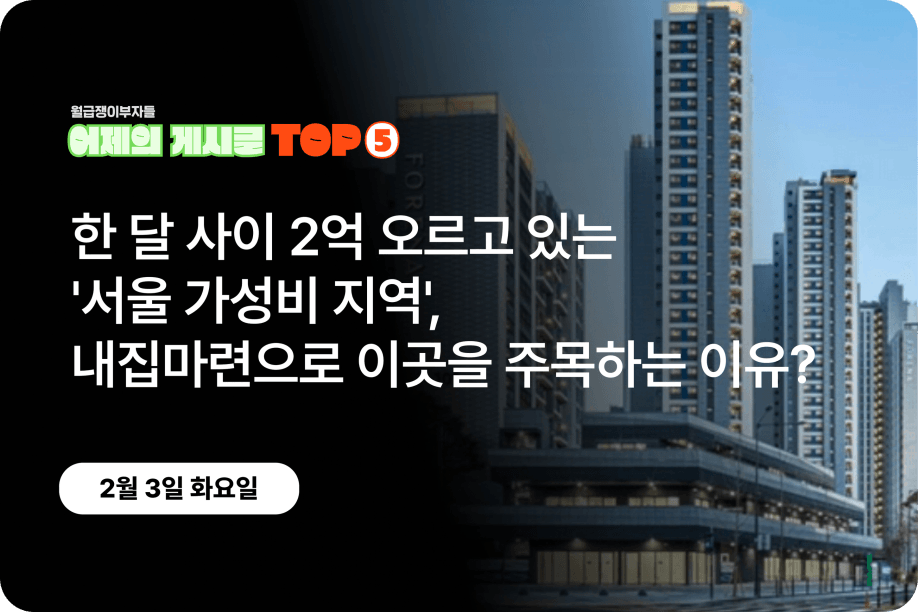 가장 반응이 좋았던 인기글만 담아 ‘어제의 게시글’ TOP5를 소개합니다.