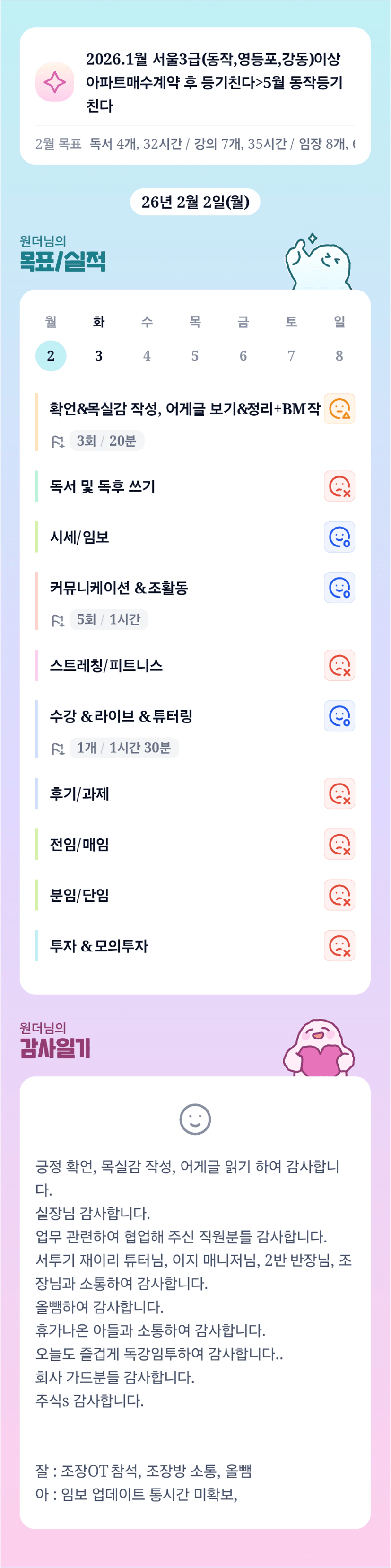 원더 조장님 한 달 동안 잘 부탁드립니다~ 화이팅입니다 :)