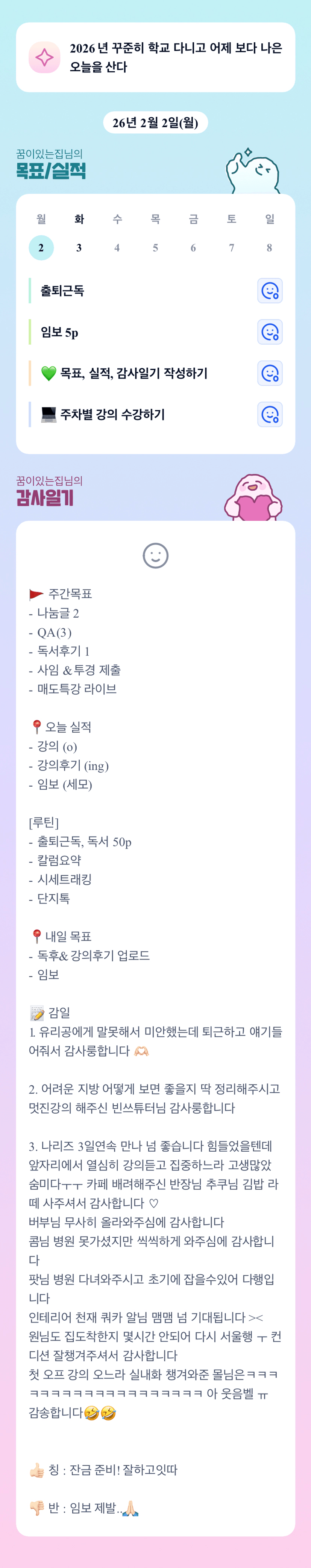 넘 열심히 살고 있네요^^ 화이팅~ 힝상 응원힙니다 ❤️