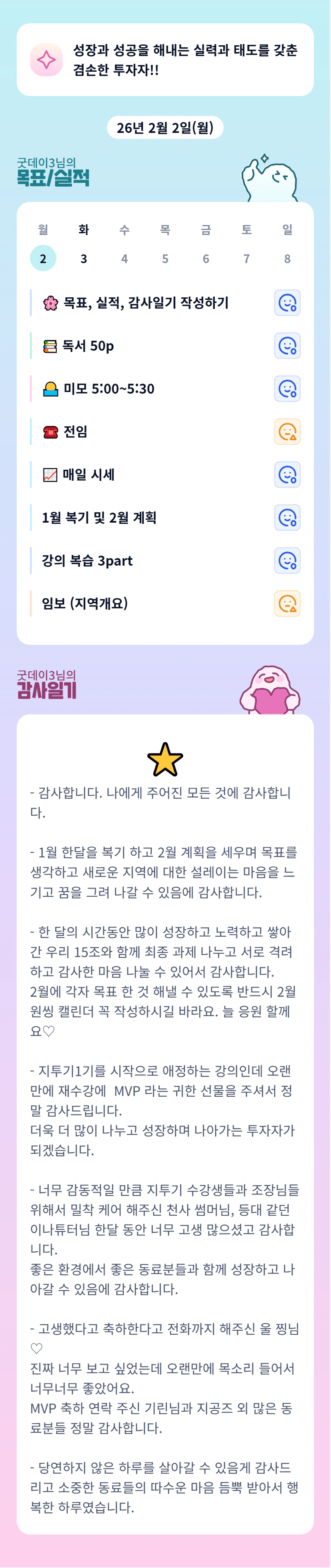 수 : 강의 복습 3part, 임보(입지분석/직장,학군,환경), 단임 루트