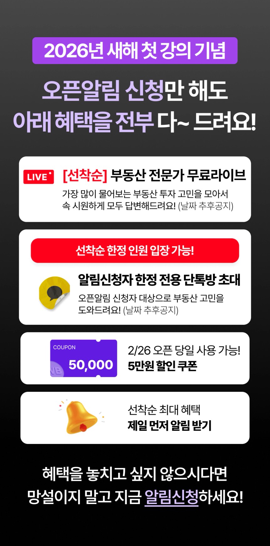 🔽 오픈알림 혜택 선착순 접수중 🔽