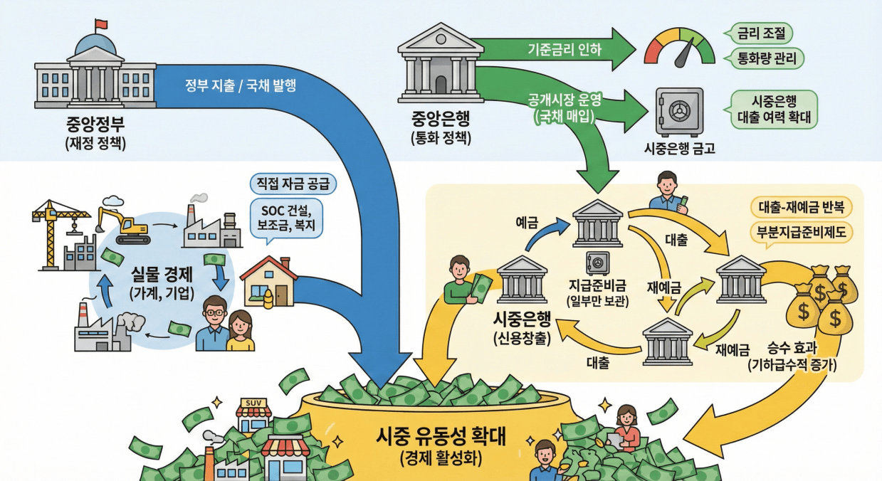 쉽게 말해 한국은행이 돈의 수도꼭지를 연다라고 표현할수 있겠네요.