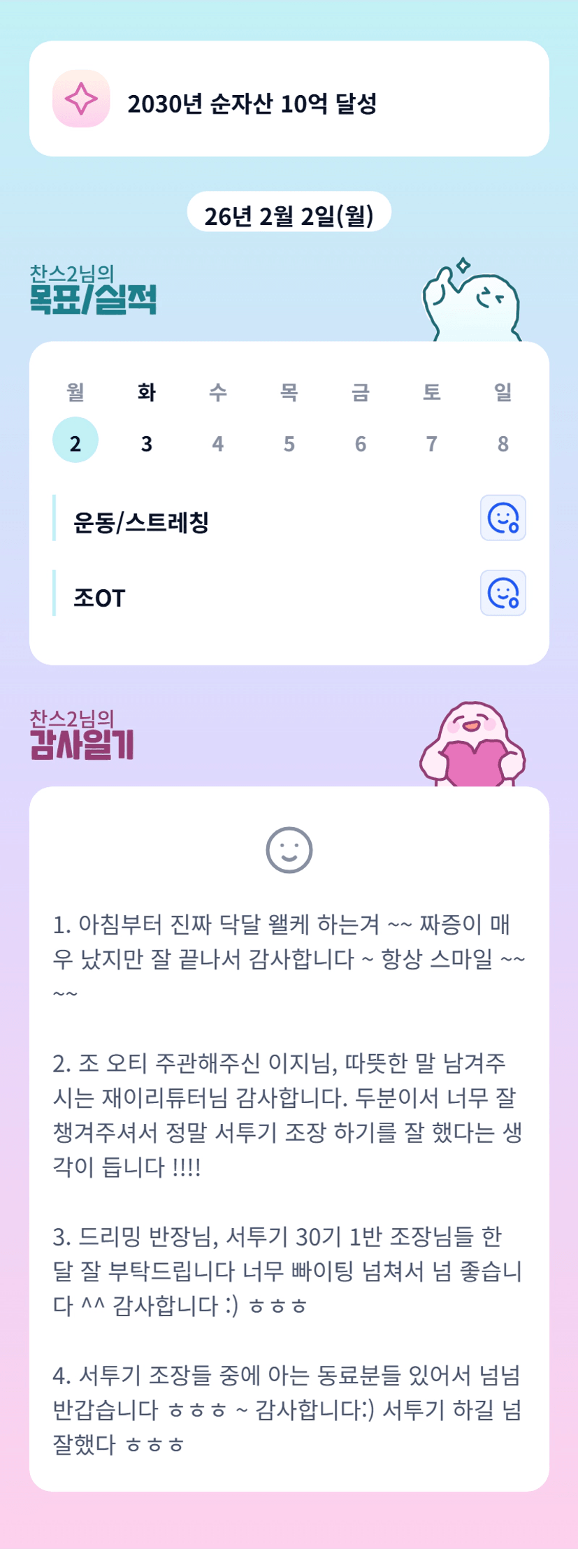 짧은 한달이지만 조장님의 경험.. 많이 나눠주세요^^