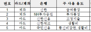 3단계. 자주 쓰는 계좌와 카드 리스트업하기 (최소 2개 ~ 최대 5개까지 진행하기)