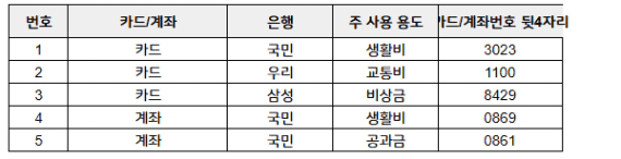 (중요) 따로 계좌/카드 개설 및 없애지 마시고 기존에 있는 것을 리스트업만 해주세요!