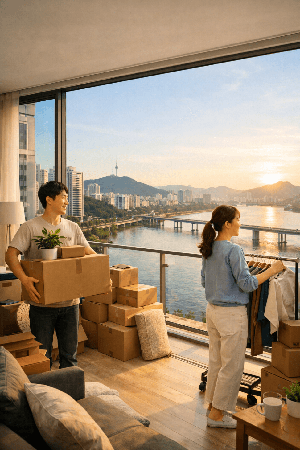 : 한강변의 더 좋은 집으로 인테리어해서 이사하는 모습