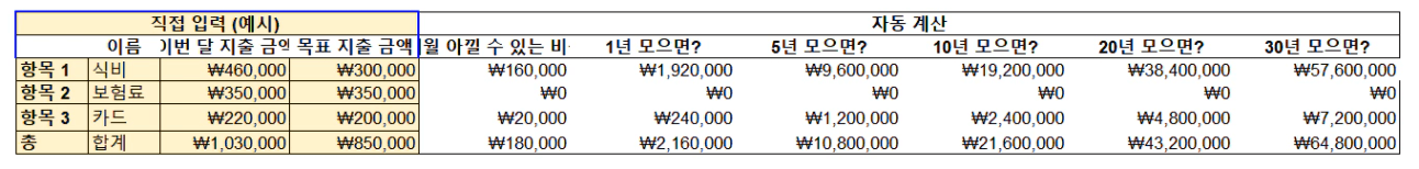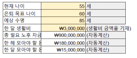 아래에 예상 합계 노후 자금이 자동 계산됩니다.