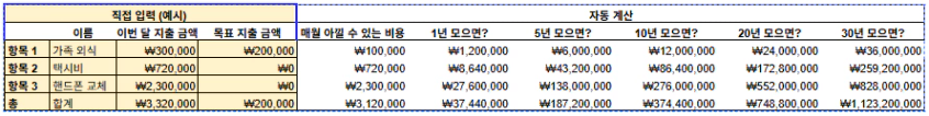| 한 달 모아야 할 돈 | ₩47,530,574 | (자동계산) |