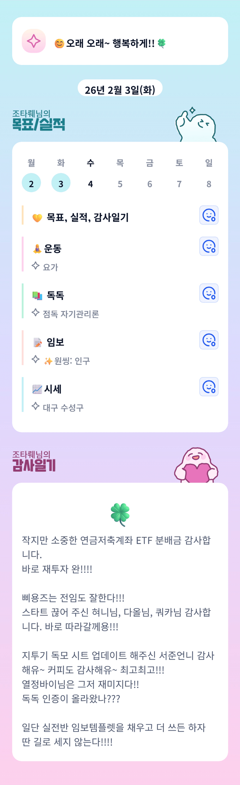 [์กฐํ๋ค ] ์๋ถ 3๊ฐ์์ฐจ ํฌ์์ฝ์นญ ๋ฐ๊ณ ๋ฐฉํฅ์ฑ์ ์ก๋ค!!(์ฑ๊ธํฌ์์, ์ฒญ์ฝ, ์ข ์ฃ๋)