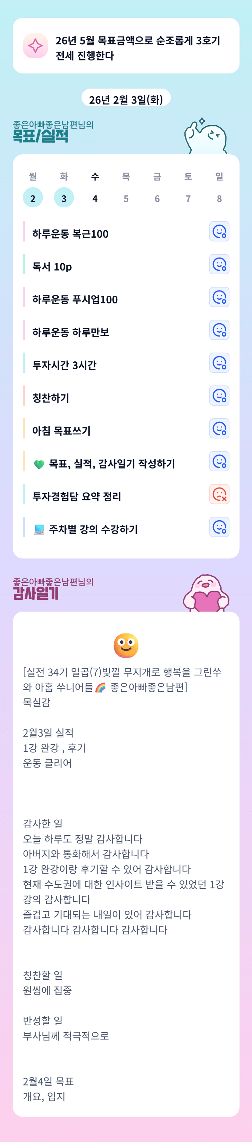 묵묵히 차근차근 아빠님 만의 속도로 잘 해나가고 계신 모습 너무 멋있숴요!!! 뽜이팅입니다 🩷