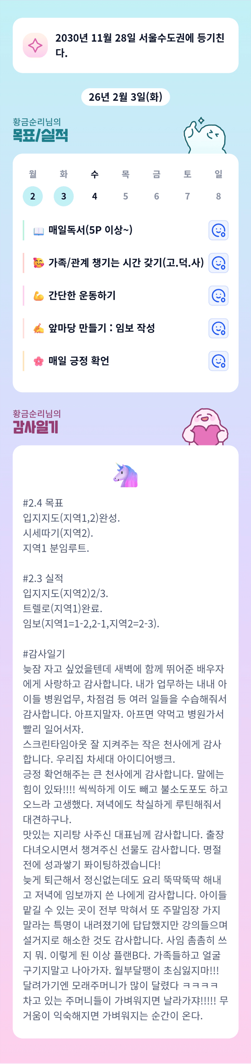 긍정순리님~주말에 임장을 가야되는데 가지못했을때의 마음 누구보다 이해합니다ㅠ.ㅠ 그래도 유리공 챙기시면서 꾸준히 해내가시는 순리님을 보면서 저 역시 많이 반성합니다!!(저는 요리도 못하거든요!!) 우리 끝까지 같이 해봐요 오늘도 화이팅입니다:)