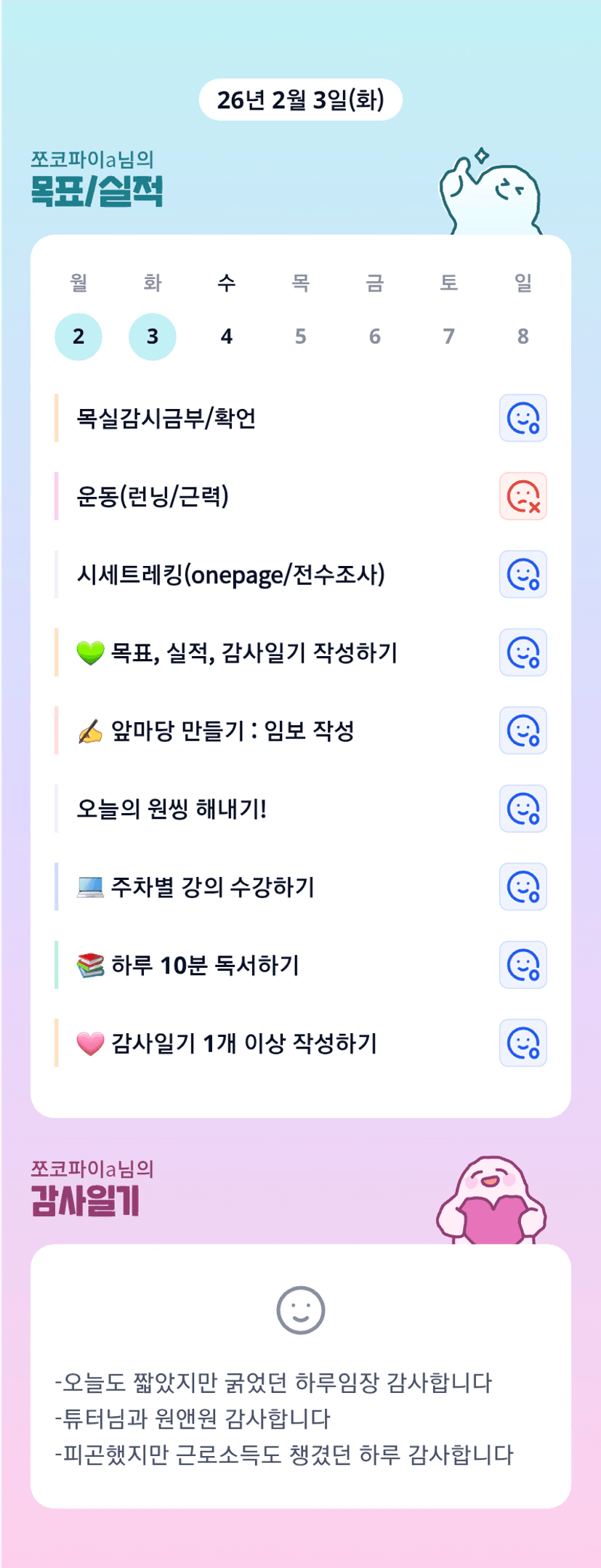 매일 단임 정말 힘드실텐데 육아와 출근까지! 갓생을 사시는 파이님을 응원합니다!!오늘도 안전임장 하고 오셔요:)