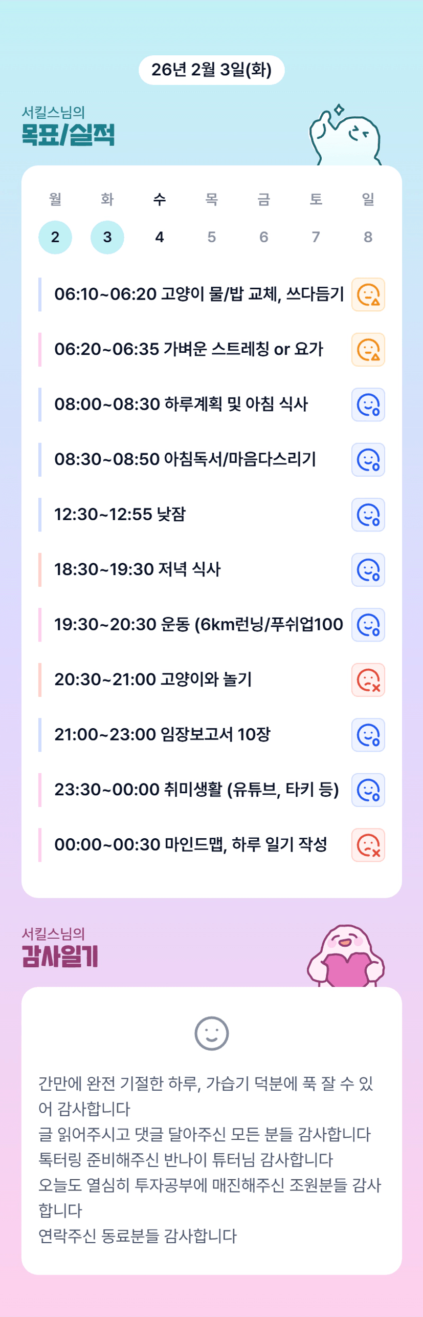 우와 서킬스님 시간당 루틴이 엄청 세세히 있으시네요!! 배우고 갑니다!! 👍 👍 👍
