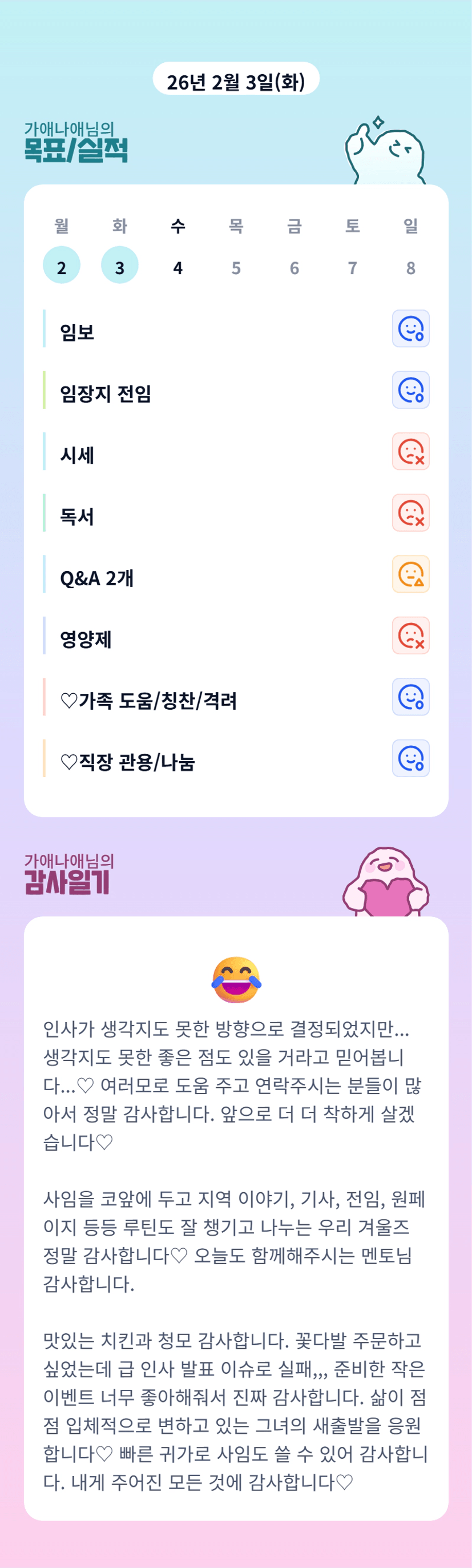 감사함이 충만한 우리 반장님🤍 오늘 저녁도 빠이팅예요!! :)