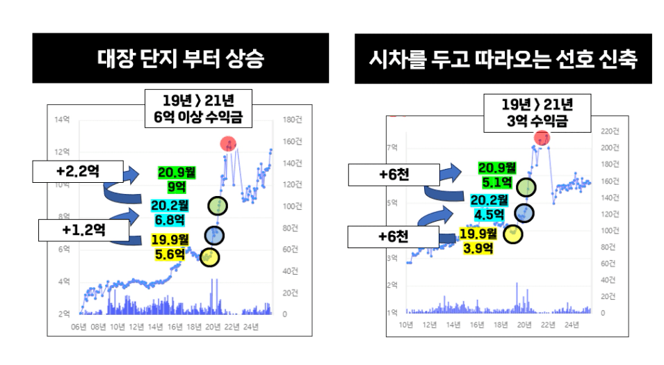 (왼쪽) 대장 단지 부터 먼저 가격이 오르고