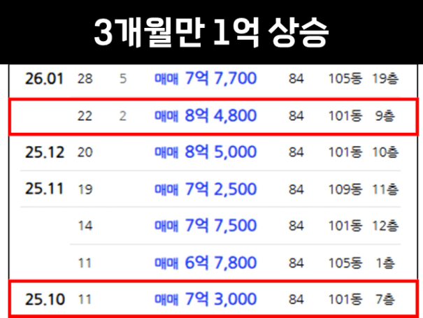 1억 가까이 상승한 사례도 확인이 됩니다.
